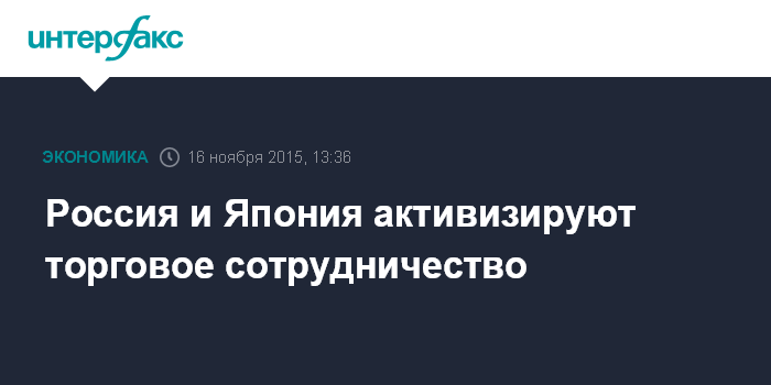 Москва. 16 ноября. INTERFAX.RU – Россия намерена активизировать деловое сотрудничество с Японией, заявил министр экономического развития Алексей Улюкаев журналистам в понедельник в Маниле по итогам встречи с министром экономики, торговли и промышленности Японии Мотоо Хаяси в рамках министерской конференции АТЭС.