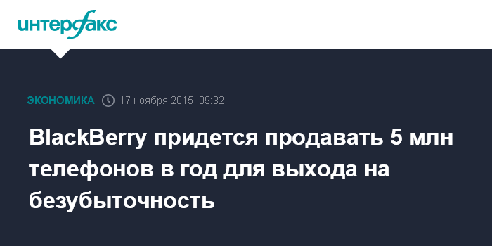 Москва. 17 ноября. INTERFAX.RU – Канадский производитель смартфонов BlackBerry сможет выйти на безубыточный уровень, если будет продавать не менее 5 млн телефонов в год, заявил CEO компании Джон Чен в интервью агентству Bloomberg на полях форума АТЭС.