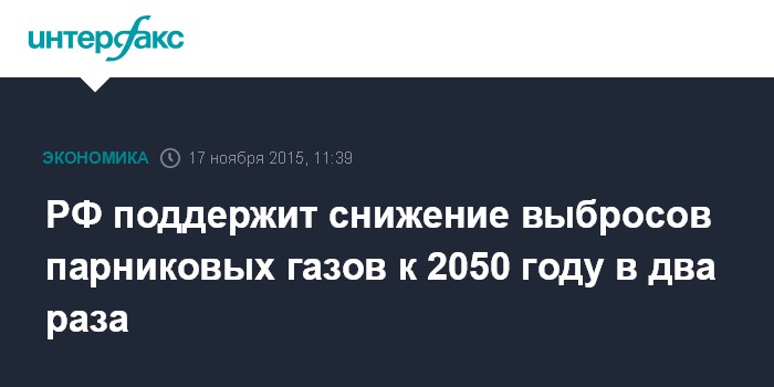 РФ поддержит снижение выбросов парниковых газов к 2050 году в два раза