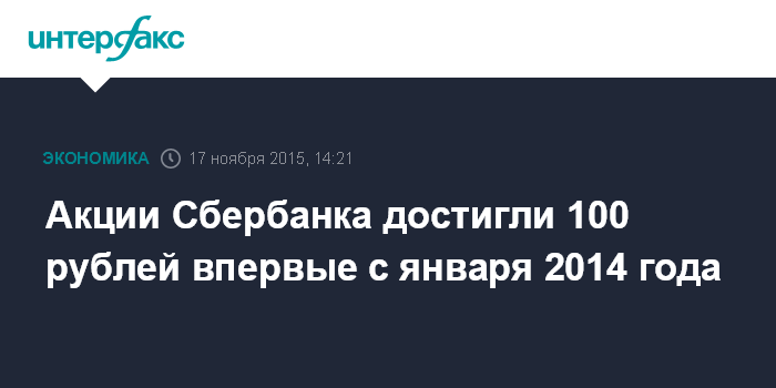 Москва. 17 ноября. INTERFAX.RU – Обыкновенные акции Сбербанка днем во вторник достигли психологического рубежа 100 рублей за штуку на фоне общерыночного подъема на ожиданиях ослабления геополитической напряженности и потепления отношений России с Западом.