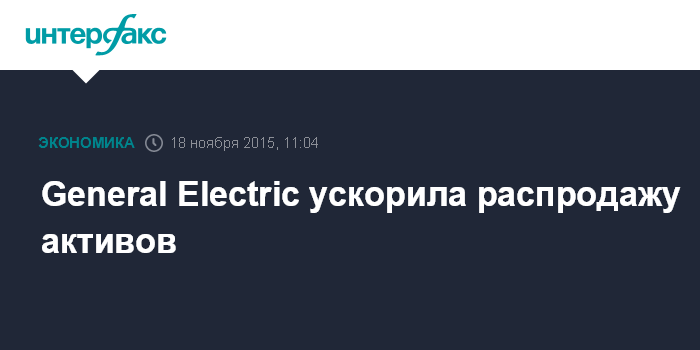 Москва. 18 ноября. INTERFAX.RU – Финансовое подразделение General Electric распродает свои активы быстрее, чем планировалось изначально, и, помимо уже заключенных в 2015 году сделок, может до конца года отделить дополнительно активы на сумму до $25 млрд.