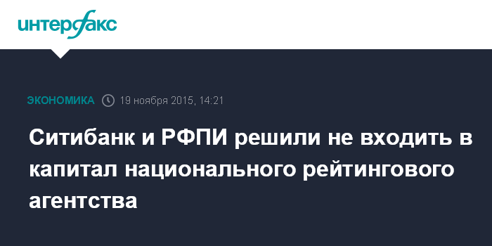 Ситибанк и РФПИ решили не входить в капитал национального рейтингового агентства