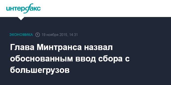 Москва. 19 ноября. INTERFAX.RU – Министр транспорта РФ Максим Соколов считает введение сборов с большегрузных автомобилей оправданной мерой, компенсирующей вред, наносимый дорожной инфраструктуре такими машинами.