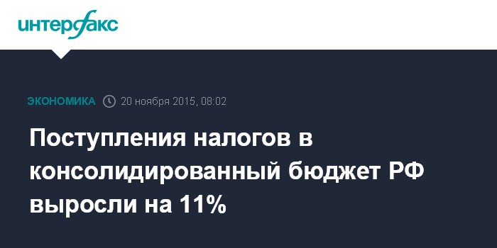 Поступления налогов в консолидированный бюджет РФ выросли на 11%
