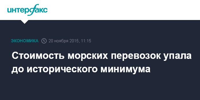 Москва. 20 ноября. INTERFAX.RU – Цены на морские перевозки упали до рекордных минимумов из-за замедления темпов роста мировой экономики и ВВП Китая в особенности, сообщает MarketWatch.
