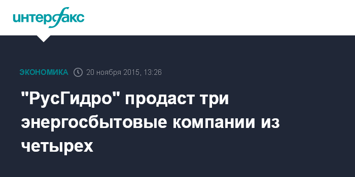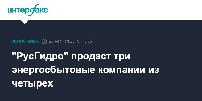 "РусГидро" продаст три энергосбытовые компании из четырех