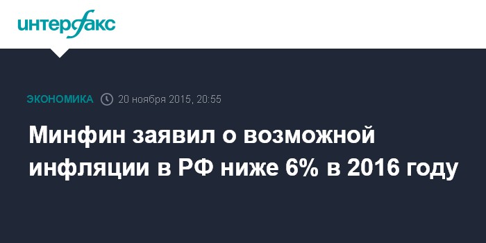 Минфин заявил о возможной инфляции в РФ ниже 6% в 2016 году