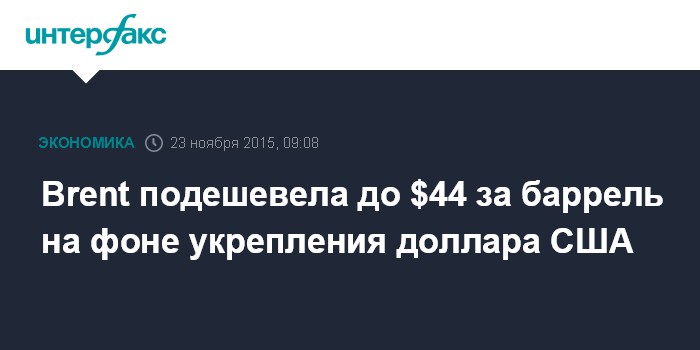 Brent подешевела до $44 за баррель на фоне укрепления доллара США