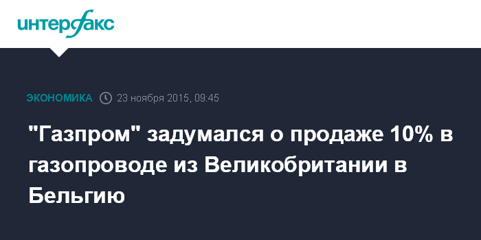 Москва. 23 ноября. INTERFAX.RU - Совет директоров "Газпрома" на заседании 30 ноября рассмотрит вопрос о продаже доли в компании Interconnector (UK) Ltd. Эта компания владеет газопроводом, соединяющим Великобританию с континентальной Европой в Зеебрюге (Бельгия).