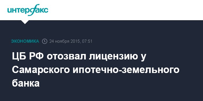 ЦБ РФ отозвал лицензию у Самарского ипотечно-земельного банка