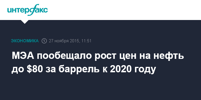 МЭА пообещало рост цен на нефть до $80 за баррель к 2020 году