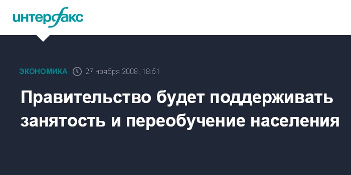 Москва. 27 ноября. INTERFAX.RU - Правительство РФ будет оказывать активную поддержку занятости населения и готово оплачивать повышение квалификации работников в период кризиса, заявил вице-премьер - министр финансов Алексей Кудрин.