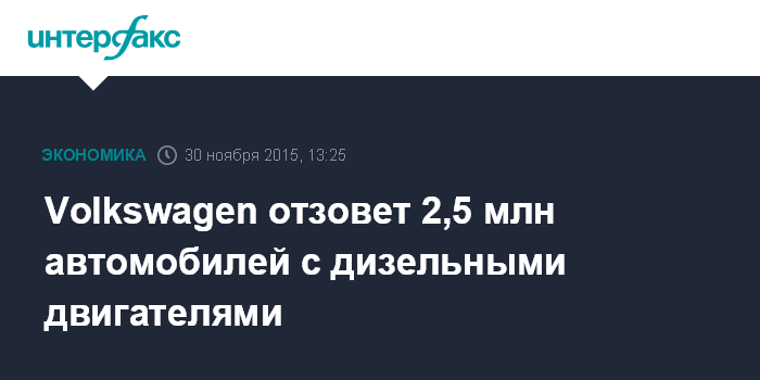 Volkswagen отзовет 2,5 млн автомобилей с дизельными двигателями
