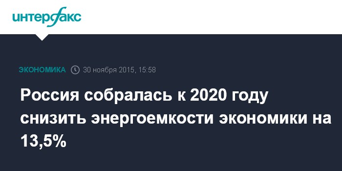 Москва. 30 ноября. INTERFAX.RU – Россия рассчитывает к 2020 году добиться сокращения еще на 13,5% энергоемкости экономики, заявил президент РФ Владимир Путин.
