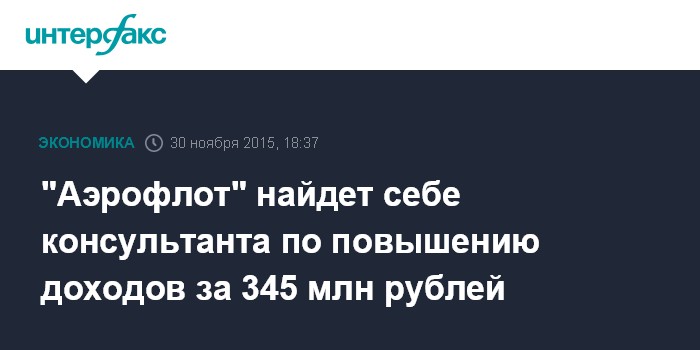 Москва. 30 ноября. INTERFAX.RU - ПАО "Аэрофлот - российские авиалинии" объявило конкурс на оказание консультационных услуг по разработке и реализации инициатив по повышению доходов ПАО "Аэрофлот" и его дочерних авиакомпаний, говорится в материалах сайта госзакупок.