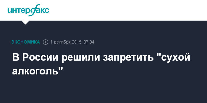 Москва. 1 декабря. INTERFAX.RU - Правительство РФ запретит продажу "сухого алкоголя". Соответствующая мера содержится в "дорожной карте" по стабилизации ситуации на алкогольном рынке. Как пишет "Коммерсант", законопроект будет готов уже весной.