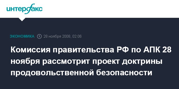 Комиссия правительства РФ по АПК 28 ноября рассмотрит проект доктрины продовольственной безопасности