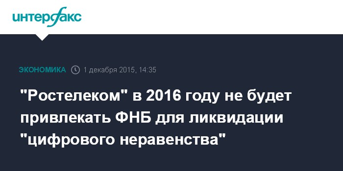 "Ростелеком" в 2016 году не будет привлекать ФНБ для ликвидации "цифрового неравенства"