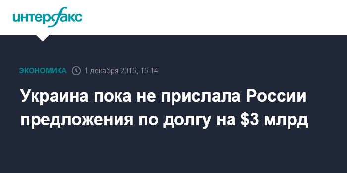Украина пока не прислала России предложения по долгу на $3 млрд