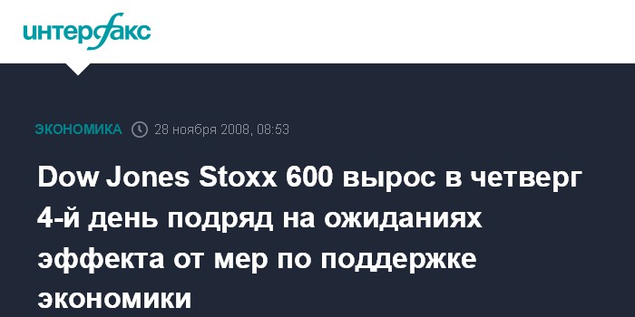 Dow Jones Stoxx 600 вырос в четверг 4-й день подряд на ожиданиях эффекта от мер по поддержке экономики
