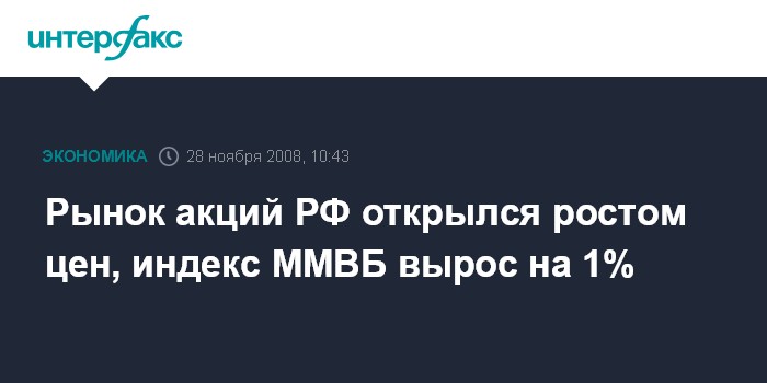 Москва. 28 ноября. INTERFAX.RU - Рынок акций РФ открылся в пятницу ростом цен на фоне подъема азиатских индексов и американских фондовых фьючерсов, индекс ММВБ в первую минуту торгов вырос на 1%.