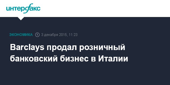 Barclays ожидает, что продажа итальянской розничной сети позволит ему сократить объем взвешенных по риску активов примерно на 800 млн фунтов стерлингов ($1,2 млрд), сообщает MarketWatch.