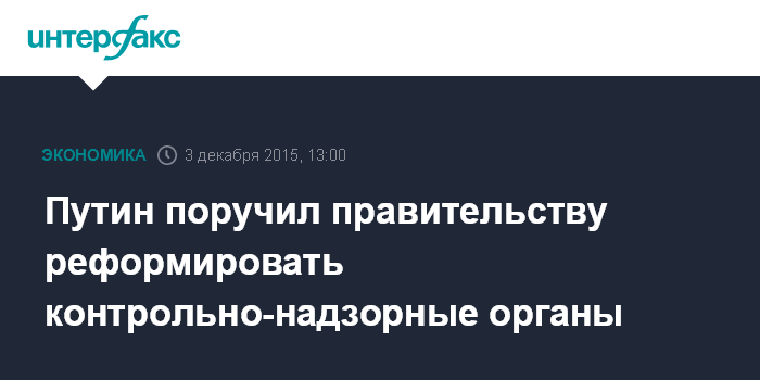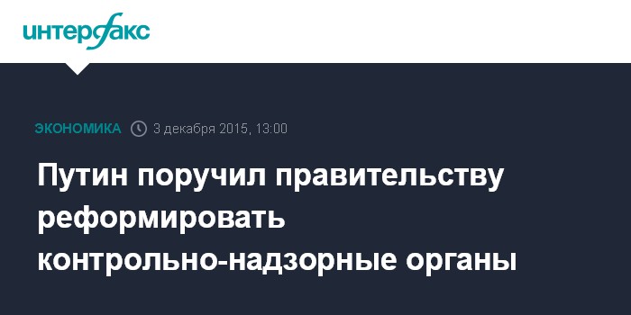 Москва. 3 декабря. INTERFAX.RU – Президент Владимир Путин поручил правительству совместно с деловым сообществом подготовить к середине будущего года конкретные предложения по ликвидации дубляжа контроля надзорных органов.