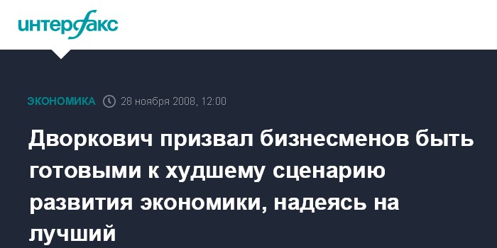 "Очевидно для нас, что мы должны в максимальной степени быть готовым к тому, что ситуация будет развиваться по наиболее неблагоприятному сценарию, но рассчитывать, что в реальности тенденции будут лучше, чем в самых неблагоприятных прогнозах", - отметил Дворкович.