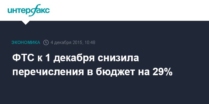 ФТС к 1 декабря снизила перечисления в бюджет на 29%