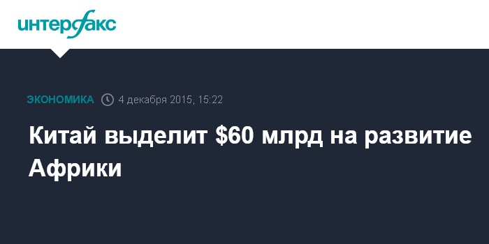Китай выделит $60 млрд на развитие Африки