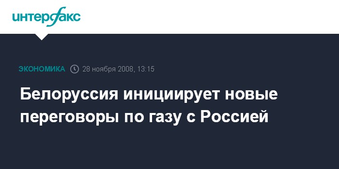 Москва. 28 ноября. INTERFAX.RU - Правительство Белоруссии инициирует новые переговоры с Россией о цене поставок газа в 2009 году, заявил вице-премьер Белоруссии Андрей Кобяков. "Предмет для переговоров по газу сейчас есть. Белорусская сторона инициирует эти переговоры, и рассчитывает, что мы придем к согласию", - сказал Кобяков журналистам в пятницу в Минске.