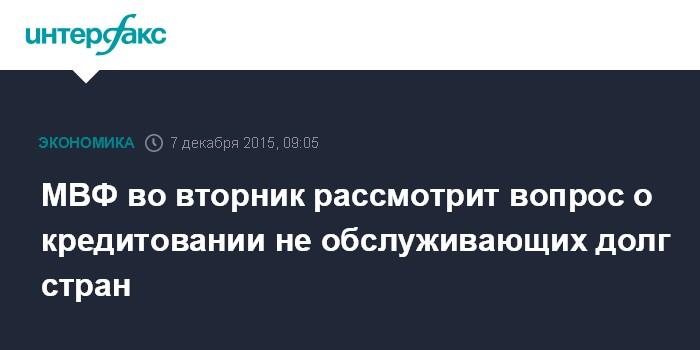 Москва. 7 декабря. INTERFAX.RU - Исполнительный совет Международного валютного фонда 8 декабря рассмотрит вопрос об изменении политики организации в отношении стран, имеющих задолженность перед официальными кредиторами.
