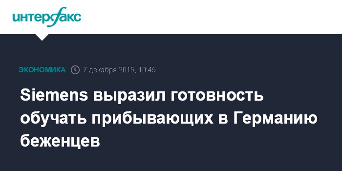 Москва. 7 декабря. INTERFAX.RU – Крупнейший в Европе промышленный конгломерат Siemens AG предложил прибывающим в ФРГ беженцам курсы по обучению и подготовке к работе в компании.