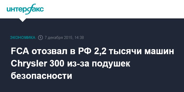 FCA отозвал в РФ 2,2 тысячи машин Chrysler 300 из-за подушек безопасности