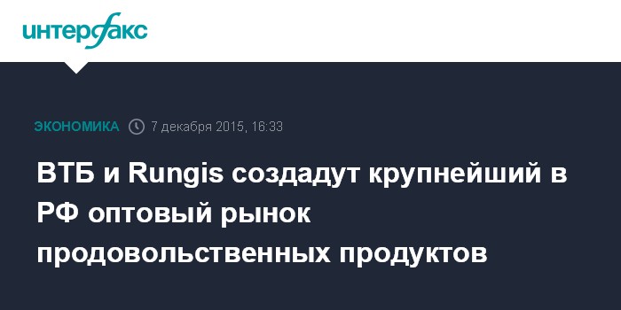 ВТБ и Rungis создадут крупнейший в РФ оптовый рынок продовольственных продуктов