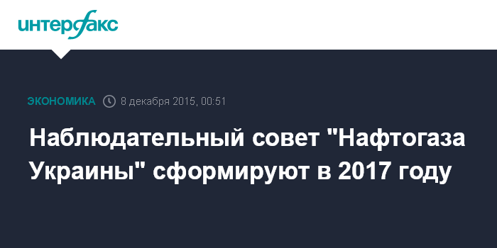 Москва. 8 декабря. INTERFAX.RU - Наблюдательный совет НАК "Нафтогаз Украины" должен быть сформирован к апрелю 2017 года, говорится в постановлении Кабинета министров №1002 от 5 декабря 2015 года, которым утвержден новый устав компании и положения о набсовете и правлении госхолдинга.