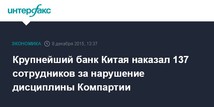 Крупнейший банк Китая наказал 137 сотрудников за нарушение дисциплины Компартии