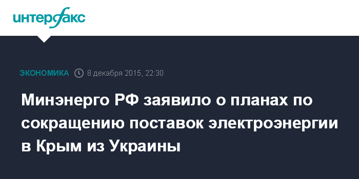 Минэнерго РФ заявило о планах по сокращению поставок электроэнергии в Крым из Украины