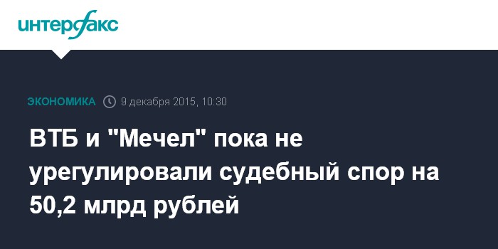 ВТБ и "Мечел" пока не урегулировали судебный спор на 50,2 млрд рублей