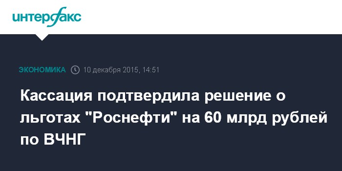 Кассация подтвердила решение о льготах "Роснефти" на 60 млрд рублей по ВЧНГ