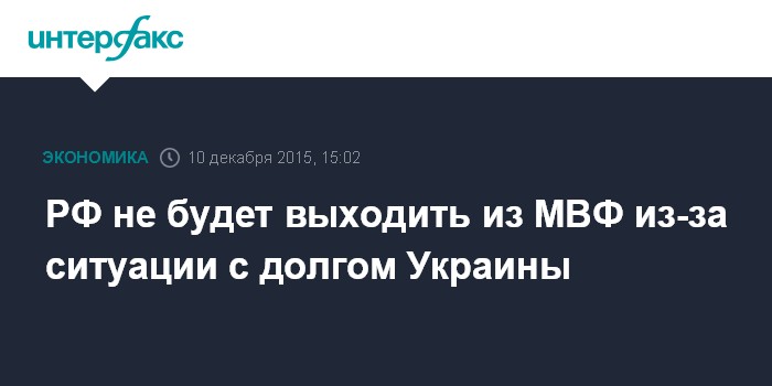 РФ не будет выходить из МВФ из-за ситуации с долгом Украины