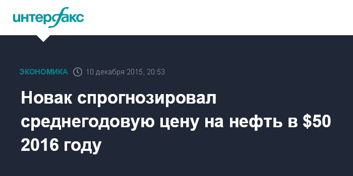 Москва. 10 декабря. INTERFAX.RU - Среднегодовая цена на нефть в 2016 году будет колебаться в районе $50 за баррель, считает министр энергетики РФ Александр Новак.