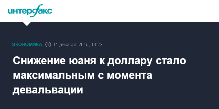 Москва. 11 декабря. INTERFAX.RU – Курс юаня к доллару США завершил текущую неделю самым существенным снижением с момента девальвации нацвалюты Народным банком Китая (НБК, центробанк страны) в августе этого года, сообщает агентство Bloomberg.