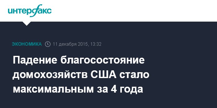 Москва. 11 декабря. INTERFAX.RU – Чистая стоимость активов домохозяйств и некоммерческих групп США в третьем квартале сократилась на максимальную величину за четыре года.