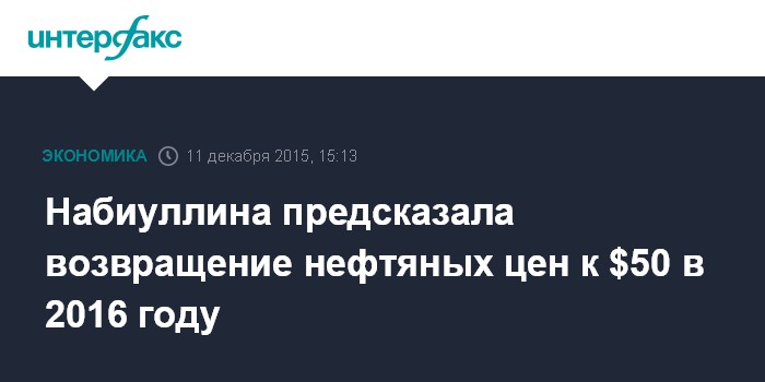Москва. 11 декабря. INTERFAX.RU – Цена на нефть вернется к уровню $50 за баррель в 2016 году, но есть риски того, что этот прогноз не реализуется, сообщила председатель ЦБ Эльвира Набиуллина на пресс-конференции в пятницу.