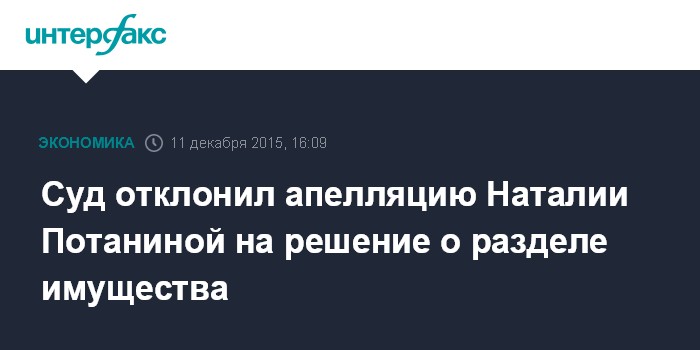 Суд отклонил апелляцию Наталии Потаниной на решение о разделе имущества
