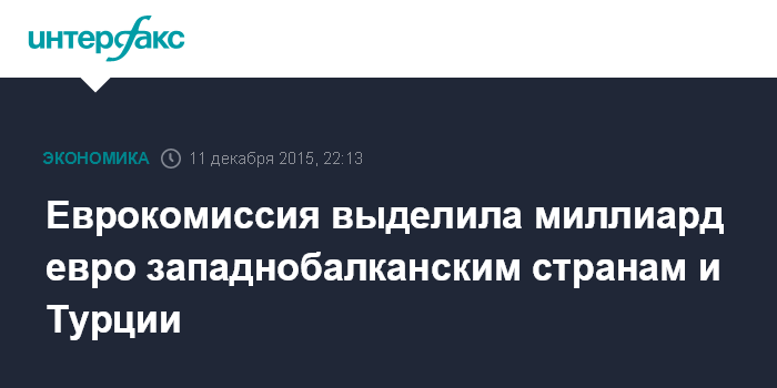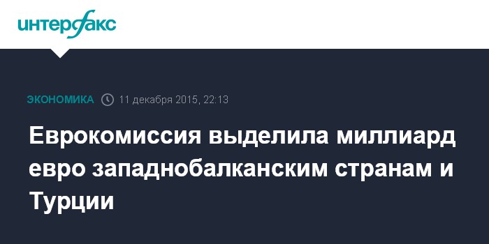 Москва. 11 декабря. INTERFAX.RU - Европейская комиссия выделила около миллиарда евро западнобалканским странам и Турции на выполнение программ подготовки к вступлению в ЕС.