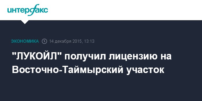 Москва. 14 декабря. INTERFAX.RU - Федеральное агентство по недропользованию (Роснедра) 14 декабря выдало ООО "ЛУКОЙЛ-Западная Сибирь" (100%-е дочернее предприятие НК "ЛУКОЙЛ" на право пользования Восточно-Таймырским участком недр, расположенном в Таймырском Долгано-Ненецком муниципальном районе Красноярского края, говорится в сообщении НК.