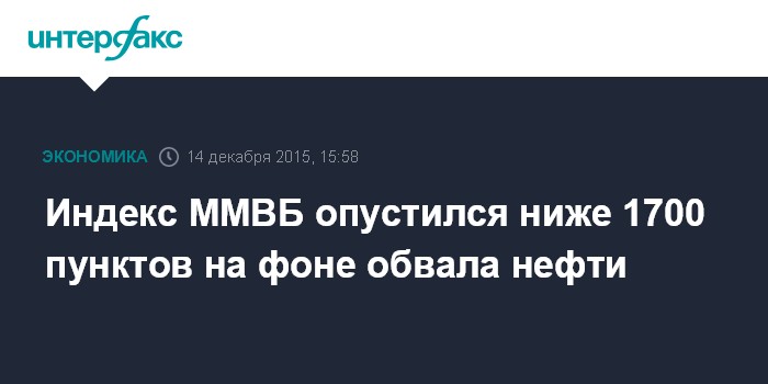 Москва. 14 декабря. INTERFAX.RU – Индекс ММВБ, один из основных российских фондовых индикаторов, в понедельник откатился ниже психологического рубежа 1700 пунктов, обновив минимум с конца октября на фоне падения нефти.