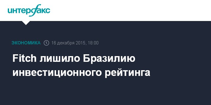 Москва. 16 декабря. INTERFAX.RU – Международное рейтинговое агентство Fitch понизило долгосрочные рейтинги дефолта эмитента (РДЭ) Бразилии в иностранной и национальной валюте до "BB+", что является спекулятивным уровнем, с "BBB-", сообщается в пресс-релизе агентства.
